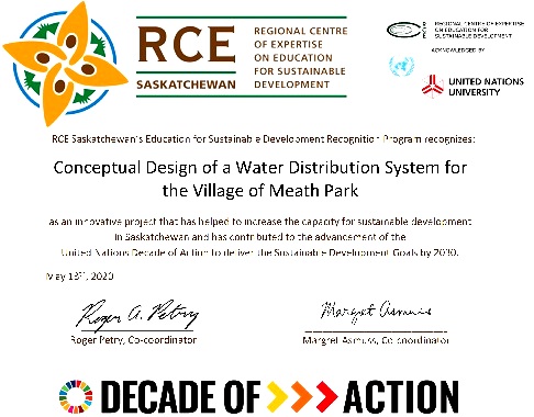 Name of project: Design of a Conceptual Water Distribution System for the Village of Meath Park