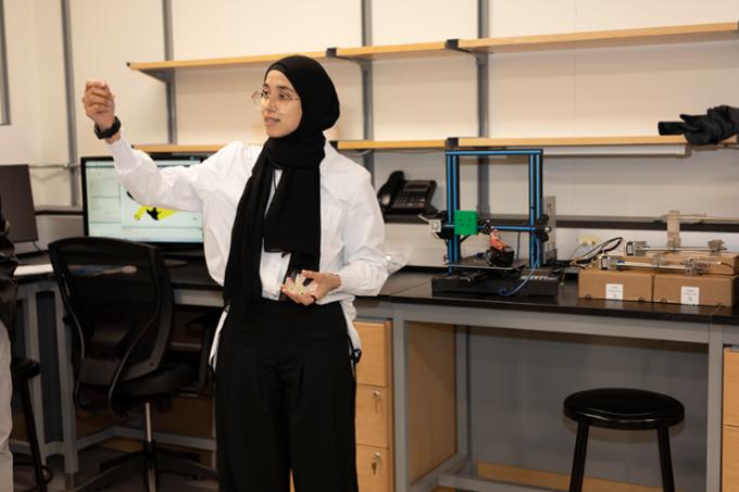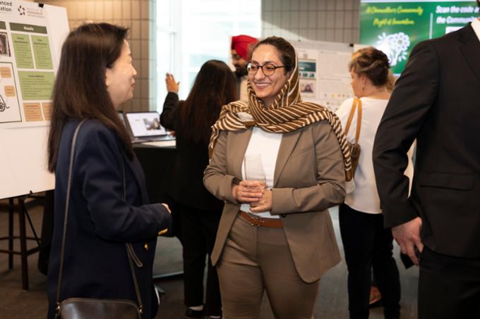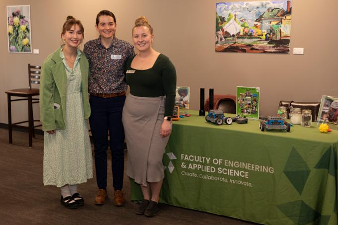The Chancellor's Community 'Pioneers of Tomorrow' on April 17 was a night of innovation in water security and sustainability, geothermal energy production, and 3D print manufacturing. Guests, including Chancellor's Scholars Anneka McLaren and Lanea Lafontaine, connected with undergraduate engineering students on their final year 'capstone' projects and learned about advances being made in alternative safe drinking water systems for our communities, software apps that can improve communication for those with vocal and hearing impairments, and enhanced safety features for wheelchairs. After dinner, participants enjoyed a guided tour of Dr. Jinkai Xue’s Cold-Region Water Resource Recovery Laboratory and Dr. Mohammad Khondoker’s 3D Printing and Additive Manufacturing Research Lab to learn about cutting-edge advances being made in water sustainability and 3D printers.