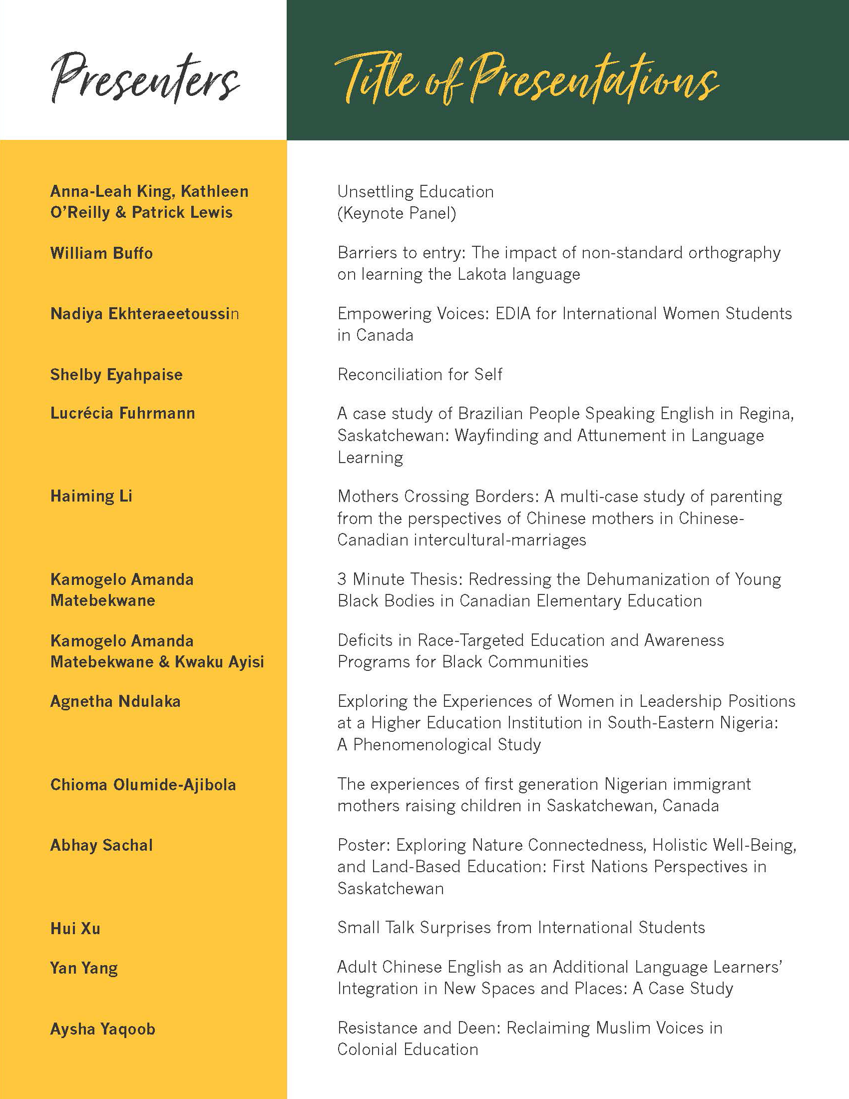 Centered around the theme “Unsettling Education”, the conference invited participants to challenge the colonial assumptions embedded in curricula, pedagogical practices, and institutional structures. It offered graduate students a platform to grow as scholars and to share transformative research grounded in decolonizing and Indigenizing approaches.