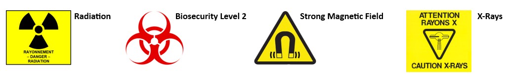 In the left panel of the laboratory specific hazards, hazards with specified notification requirements will be shown via a pictogram. These pictograms include: