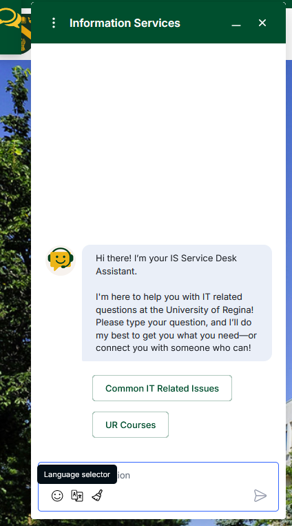 - Please avoid asking it questions that are not IT tech related and would not logically appear on the Information Services webpages, UR Source pages, or UR Courses guides.