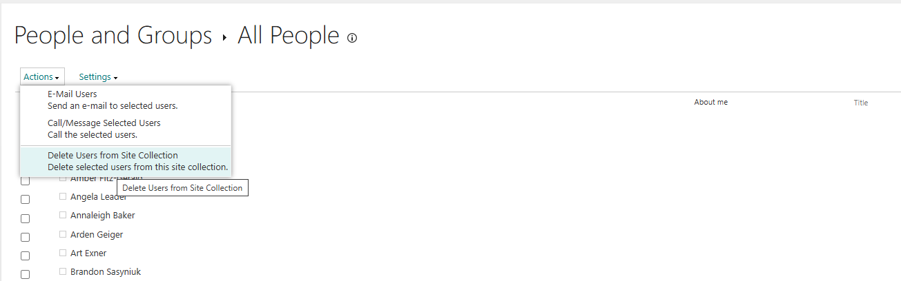 Follow the steps below to access the All People page and remove users from your site collection.- Go to your site collection’s root site (top‑level site).