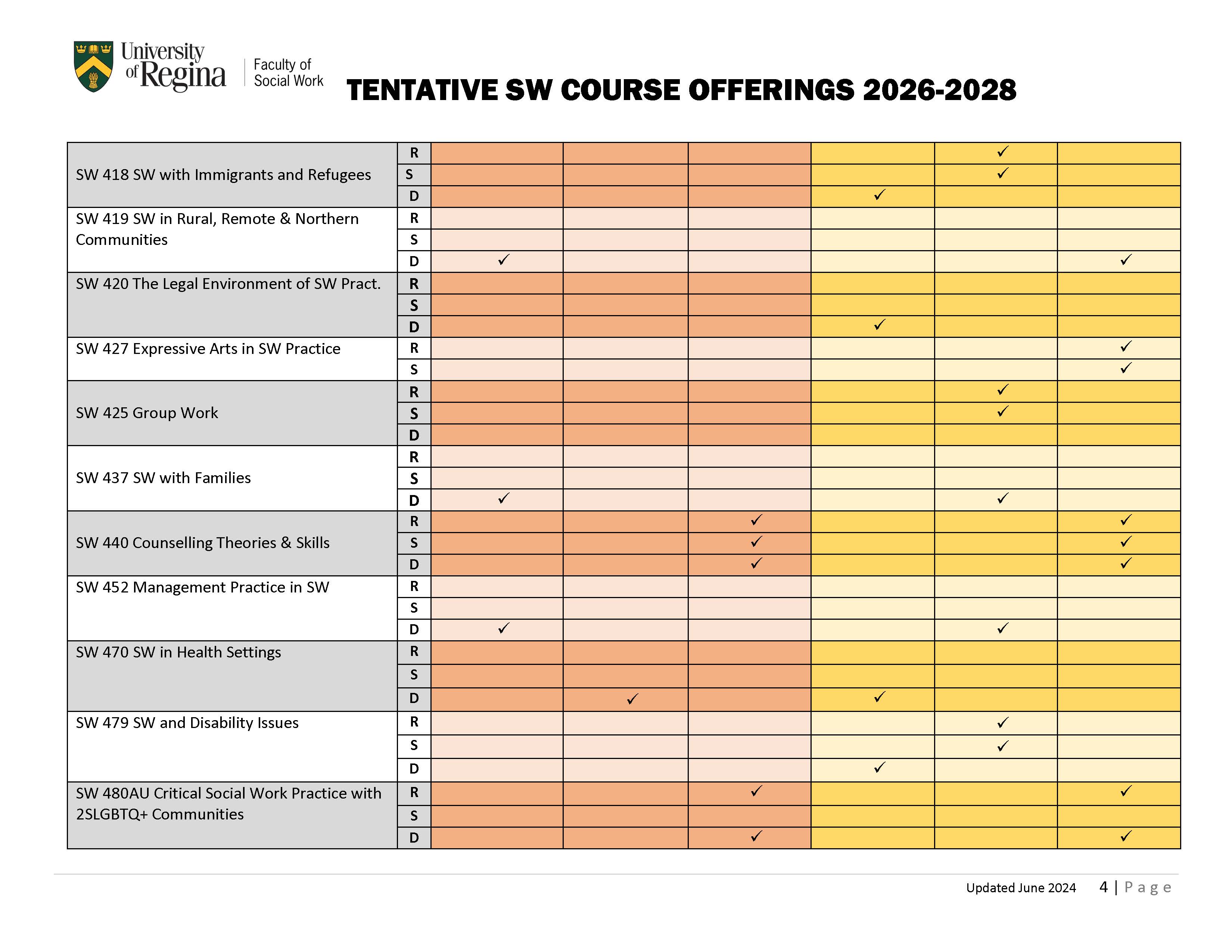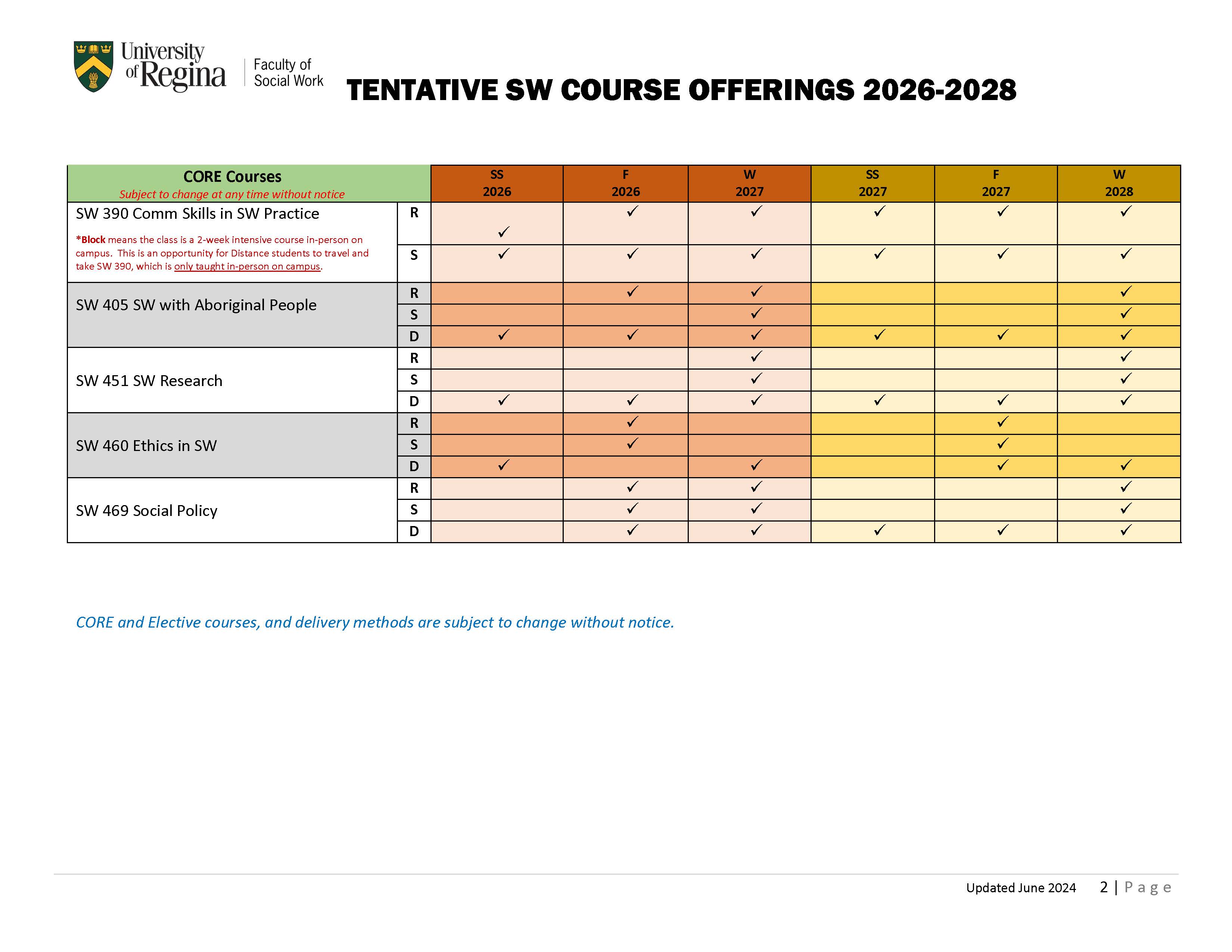 Please check SW 390 Spring/Summer course information sheet