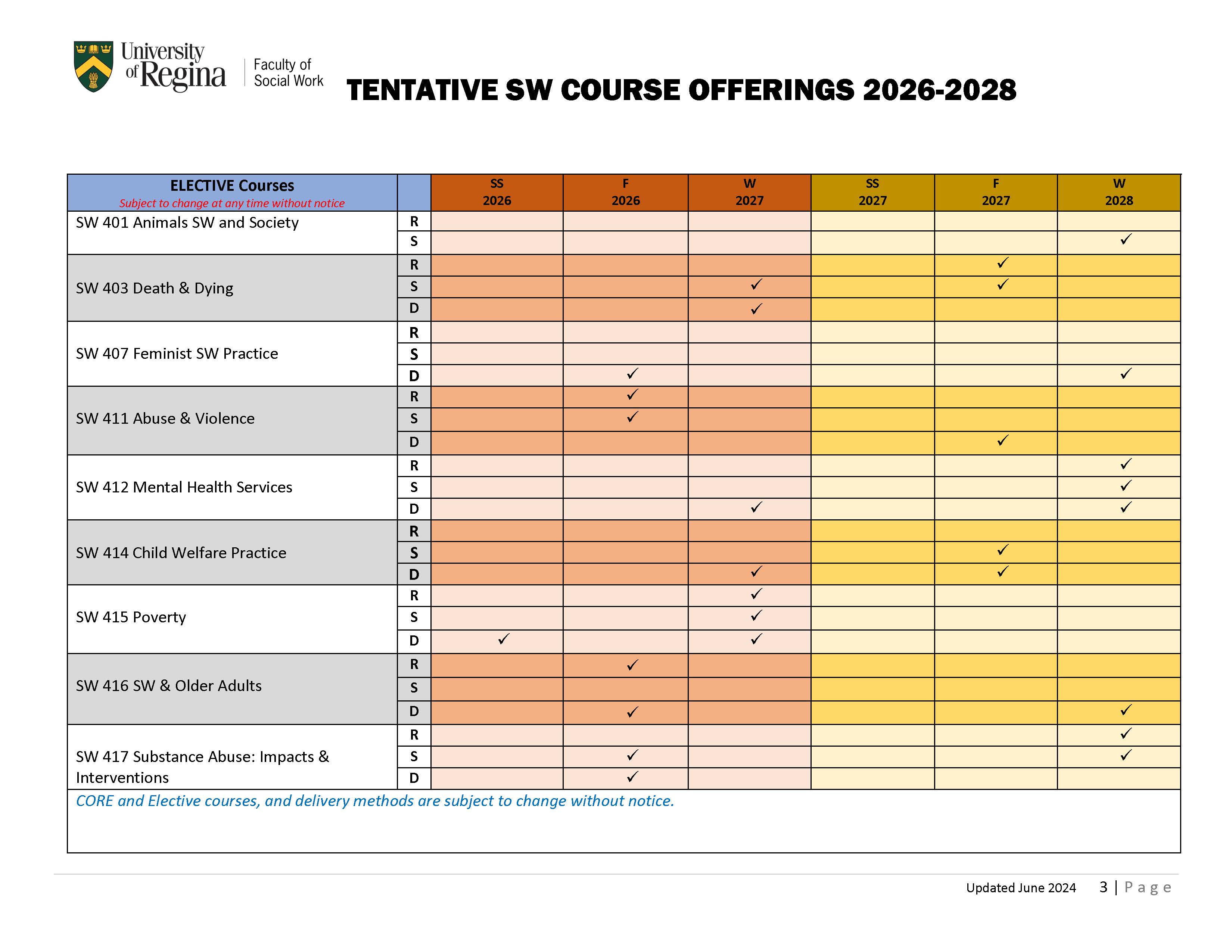 | 3 | SW Elective (SW or INSW course) |